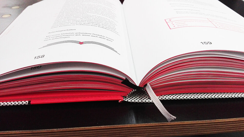 So konzipierten sie mit erfahrenen Buchbindern*innen, Verlagsherstellern*innen und Produktionen eine Art Kompendium der Buchbinderei und Weiterverarbeitung, das eindeutig Gestalter*innen als Zielgruppe ansprechen sollte. Verschiedene Buchbindearten und Buchausstattungen werden vorgestellt, analysiert und dargestellt, ohne aber, dass zu sehr ins Detail gegangen wird. Spezielle Aspekte, wie zum Beispiel der Aufbau der jeweiligen Maschinen, rücken in den Hintergrund – vielmehr wird beleuchtet, welche gestalterischen Aspekte beim Buchbinden berücksichtigt werden müssen.