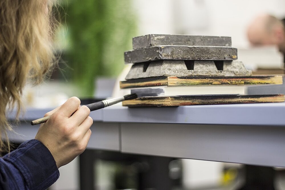 Nun ist es ja so, dass alle Erstsemester des Studienganges Buch- und Medienproduktion bei Ihnen ein Praktikum in der manuellen Buchherstellung absolvieren. Können Sie uns kurz erklären was in diesem Praktikum genau gemacht wird?