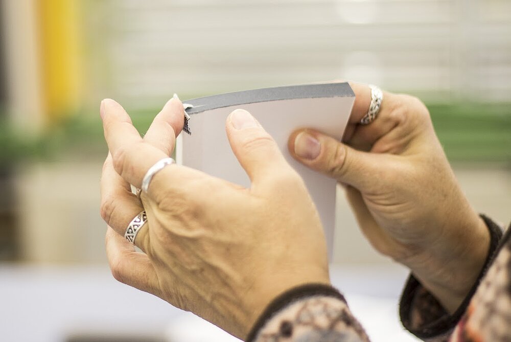 Bücher begreifen, heißt es hier. In diesem Fall kann man das tatsächlich wörtlich nehmen. Begleiten Sie uns in der Form eines Interviews mit der zuständigen Laboringenieurin in die Sortimentsbuchbinderei. Erhalten Sie Einblicke und Eindrücke von der Ausstattung und dem Herzen der Werkstatt.