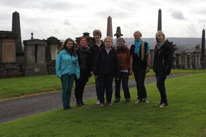 Als erstes galt es Glasgow zu erkunden. Die alte Arbeiterstadt lockt mit moderner Kunst und zahlreichen Einkaufsmöglichkeiten. Mit Hilfe von Kartenausschnitten und Wegbeschreibungen ergründeten die Studierenden in kleinen Gruppen die Stadtteile Glasgows. Auf diese Erkundungstouren fanden sie sich unter anderem in erholsamen Grünanlagen wie dem botanischen Garten und der alten Gräberstadt »Necropolis« wieder.