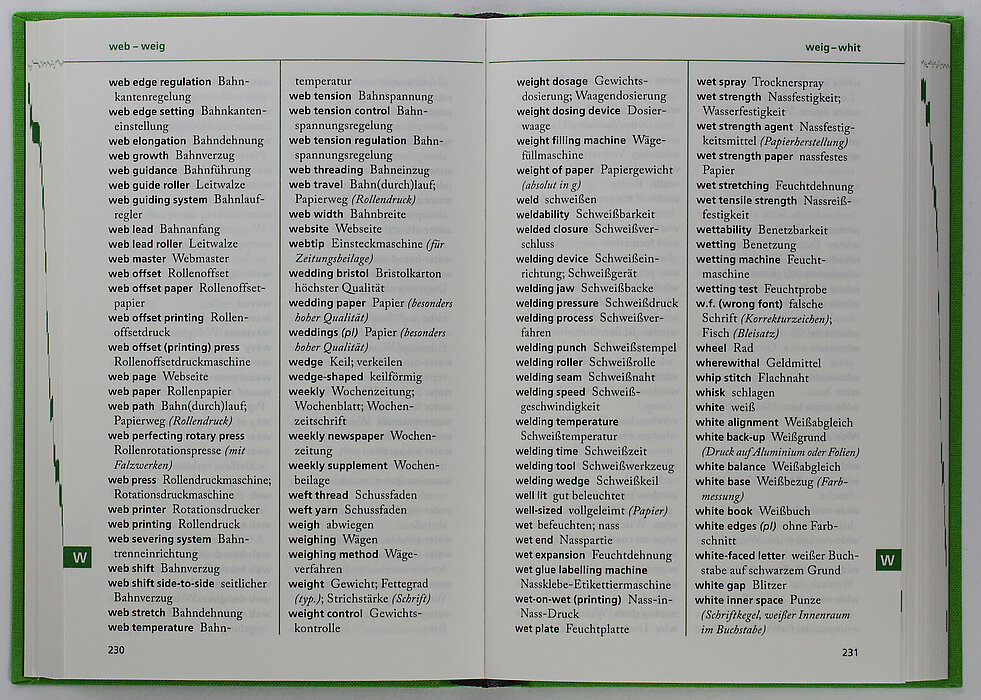 Im letzten Jahr wurde das Fachwörterbuch übrigens von der Stiftung Buchkunst prämiert. Dank der ausgezeichneten Gestaltung und Herstellung schafften wir es auf die Shortlist der schönsten deutschen Bücher.